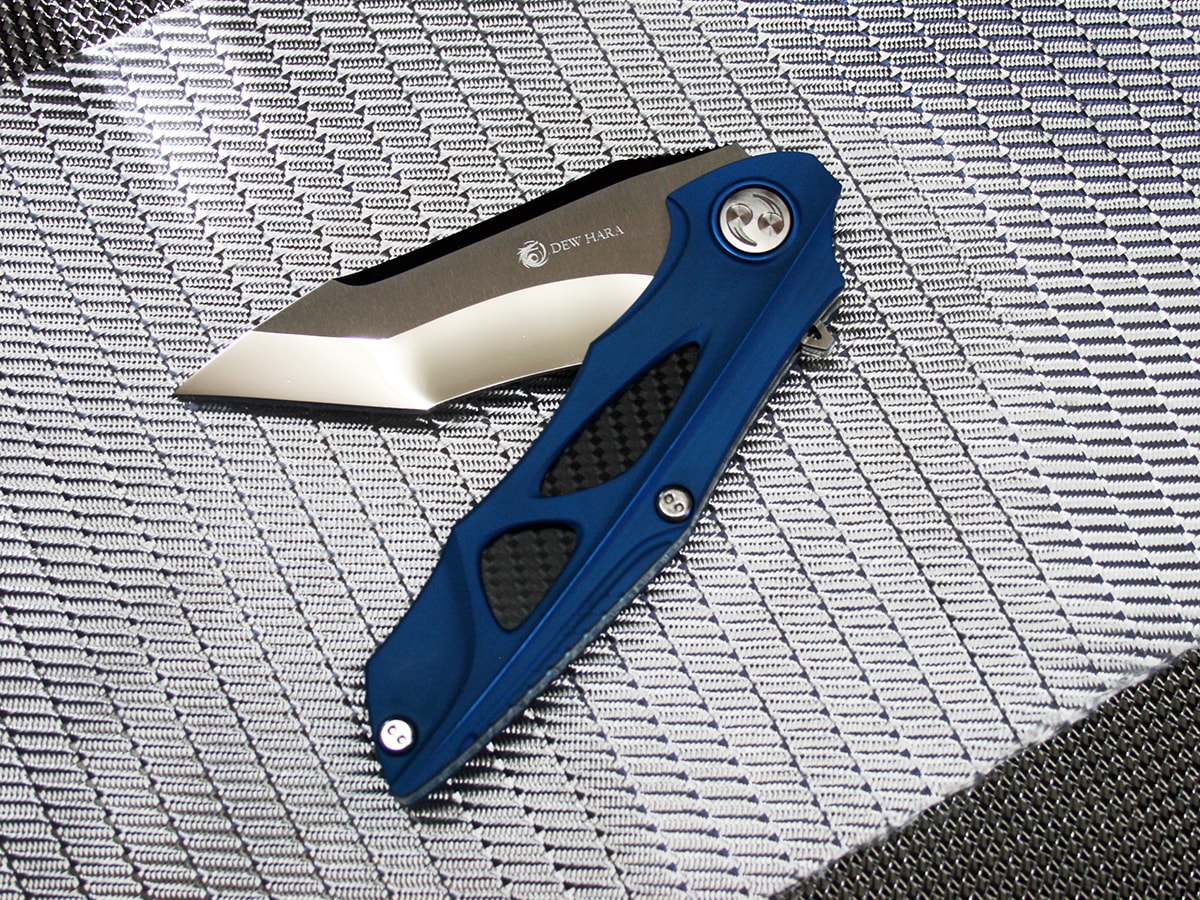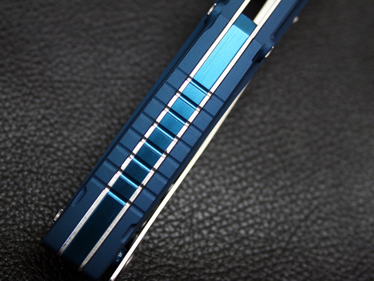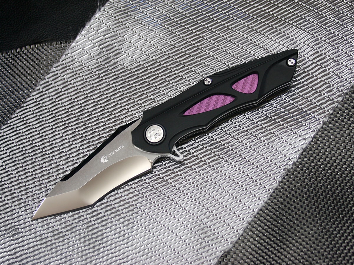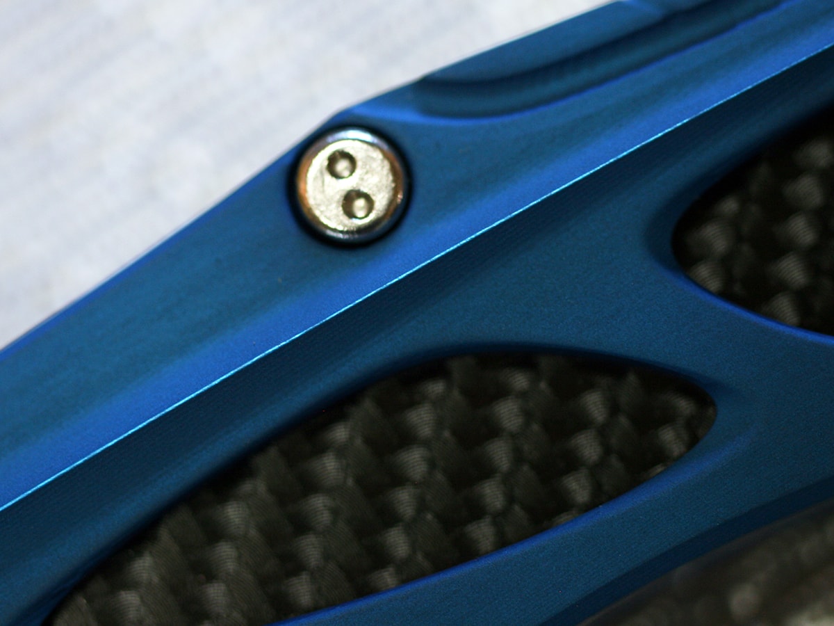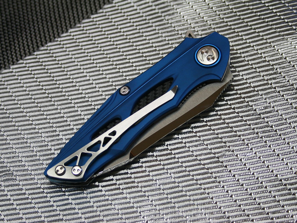 Machined and Anodized Duralumin handle is constructed from different kinds of color over stainless steel liners with a carbon fiber film on each side for added aesthetics.