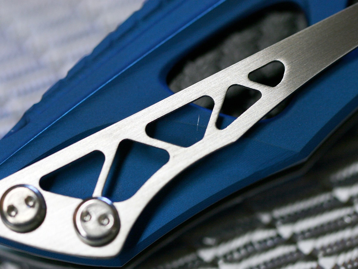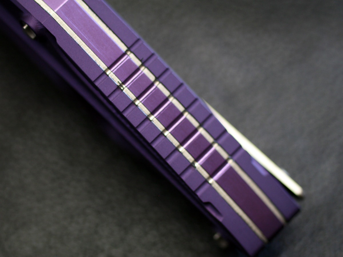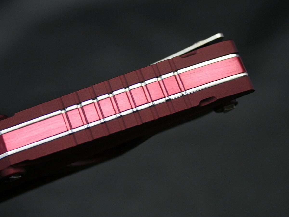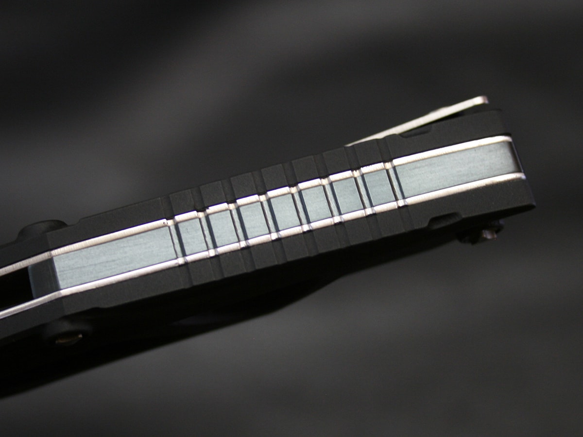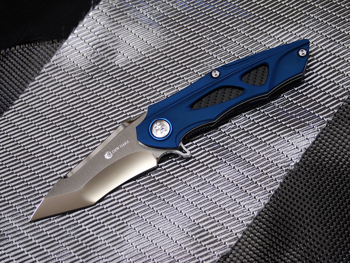 Machined and Anodized Duralumin handle is constructed from different kinds of color over stainless steel liners with a carbon fiber film on each side for added aesthetics.